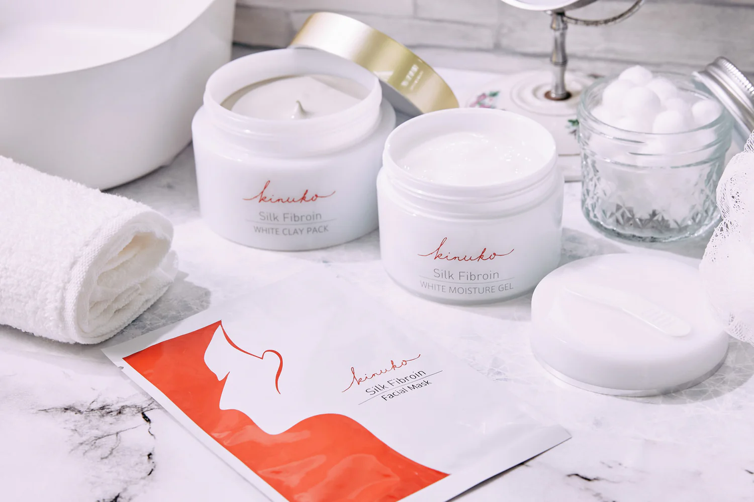 kinuko 薬用ホワイトモイスチャーゲルkinuko¥4,500 (税込価格 ¥4,950 )この1つで変わる肌未来。ツヤと輝き、潤いのある絹美肌へ、1品7役の薬用オールインワンゲル。メラニンの生成を抑え、しみ、そばかすを防ぎます。Silk Fibroin(シルク末)配合(保湿成分)1品7役化粧水・乳液・クリーム・美容液・パック・マッサージゲル・化粧下地5つのフリー ノンパラベン 無香料 無鉱物油 無タール系色素 石油系界面活性剤不使用内容量:150g区分:医薬部外品原産国:日本使用方法●朝晩、洗顔後または化粧水でお手入れした後、適量を顔全体にのばします。仕上げにお顔全体を包み込むようにおさえて馴染ませます。●顔全体または部分的にパックするように重ねて塗布するのも効果的です。有効成分トラネキサム酸、グリチルリチン酸2Kその他の成分シルク末・ステアロイルフィトスフィンゴシン・スフィンゴ糖脂質・サクシニルアテロコラーゲン液・アセチル化ヒアルロン酸ナトリウム・ヒアルロン酸Na−2・加水分解ヒアルロン酸・天然ビタミンE・ビサボロール・黒砂糖エキス・桑エキス・アロエエキス−2・マロニエエキス・メリッサエキス・カモミラエキス−1・タイムエキス−1・プルーン酵素分解物・トウキエキス−1・チンピエキス・キウイエキス・トリメチルグリシン・トレハロース・濃グリセリン・1,3−プロパンジオール・1,2−ペンタンジオール・BG・エチルヘキサン酸セチル・ジメチコン・カルボキシビニルポリマー・キサンタンガム・水添大豆リン脂質・ラウロイルグルタミン酸ジ(フィトステリル・オクチルドデシル)・ステアリン酸POE(20)ソルビタン・ジエチレントリアミン5酢酸5Na液・水酸化K・フェノキシエタノール -